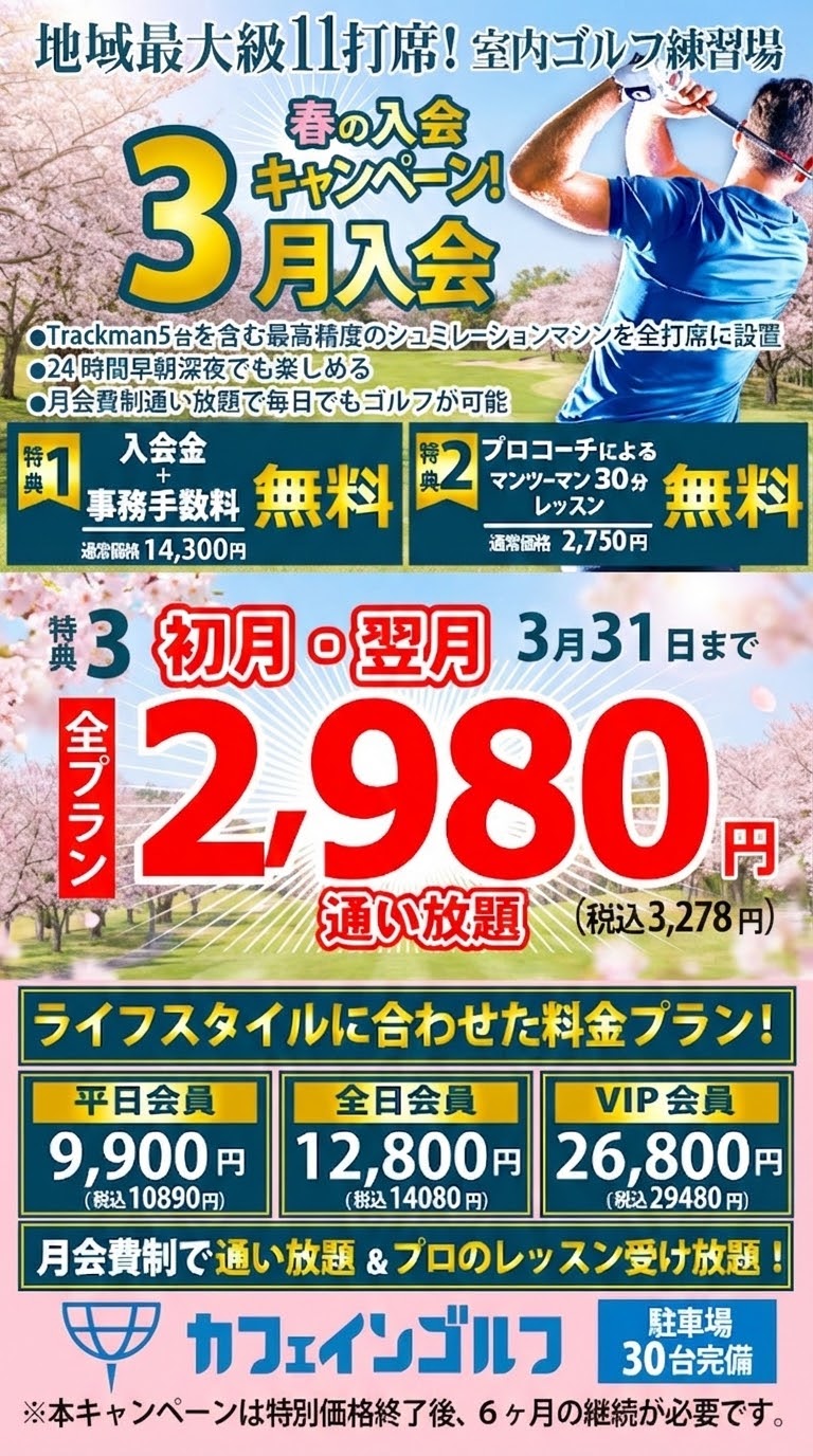 「まだ打ちたいけどお金が・・」そんな心配は一切不要。定額通い放題なので満足するまで思う存分練習し上達を目指せます。